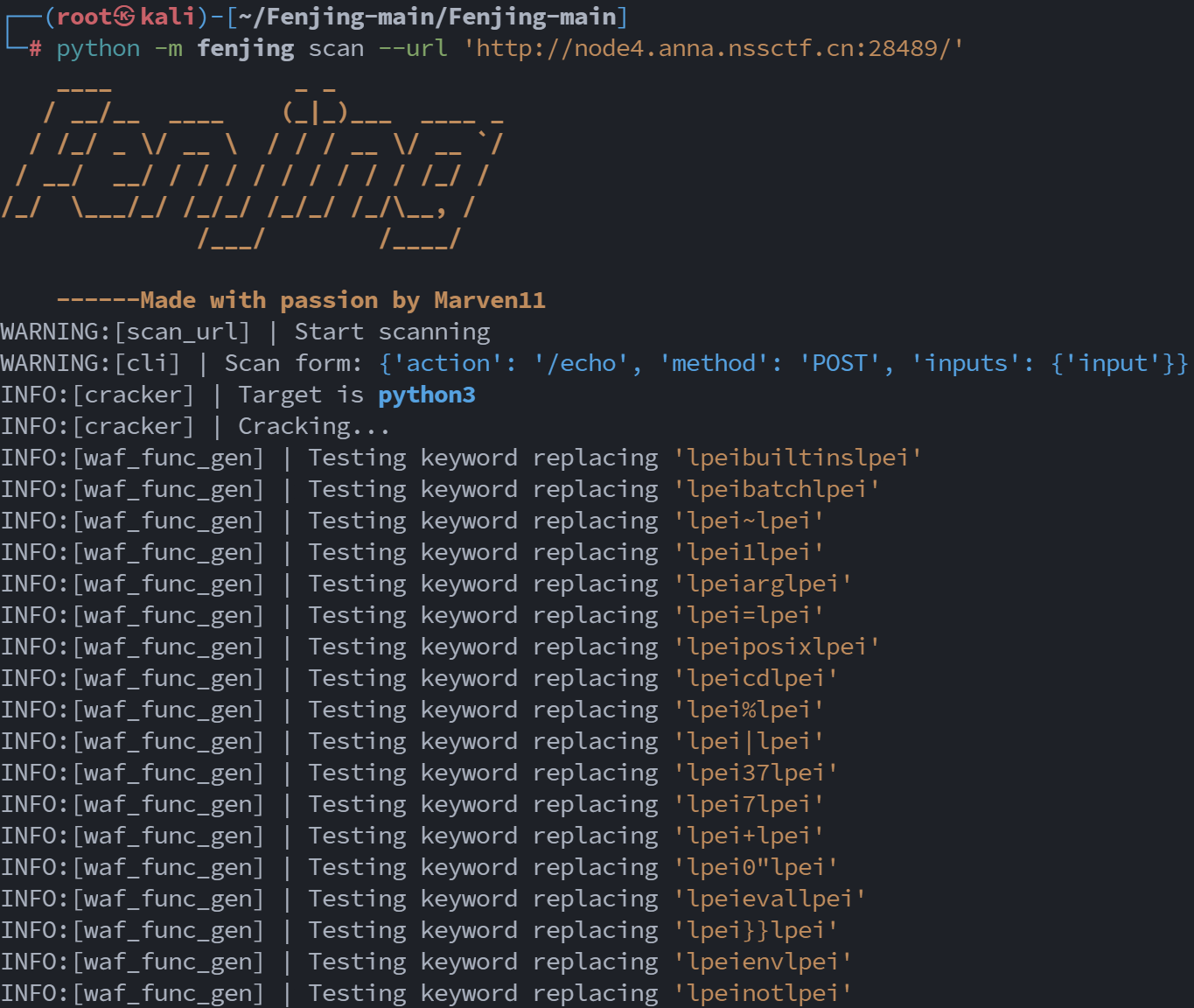 python -m fenjing scan --url 'http://xxxx:xxx/yyy'