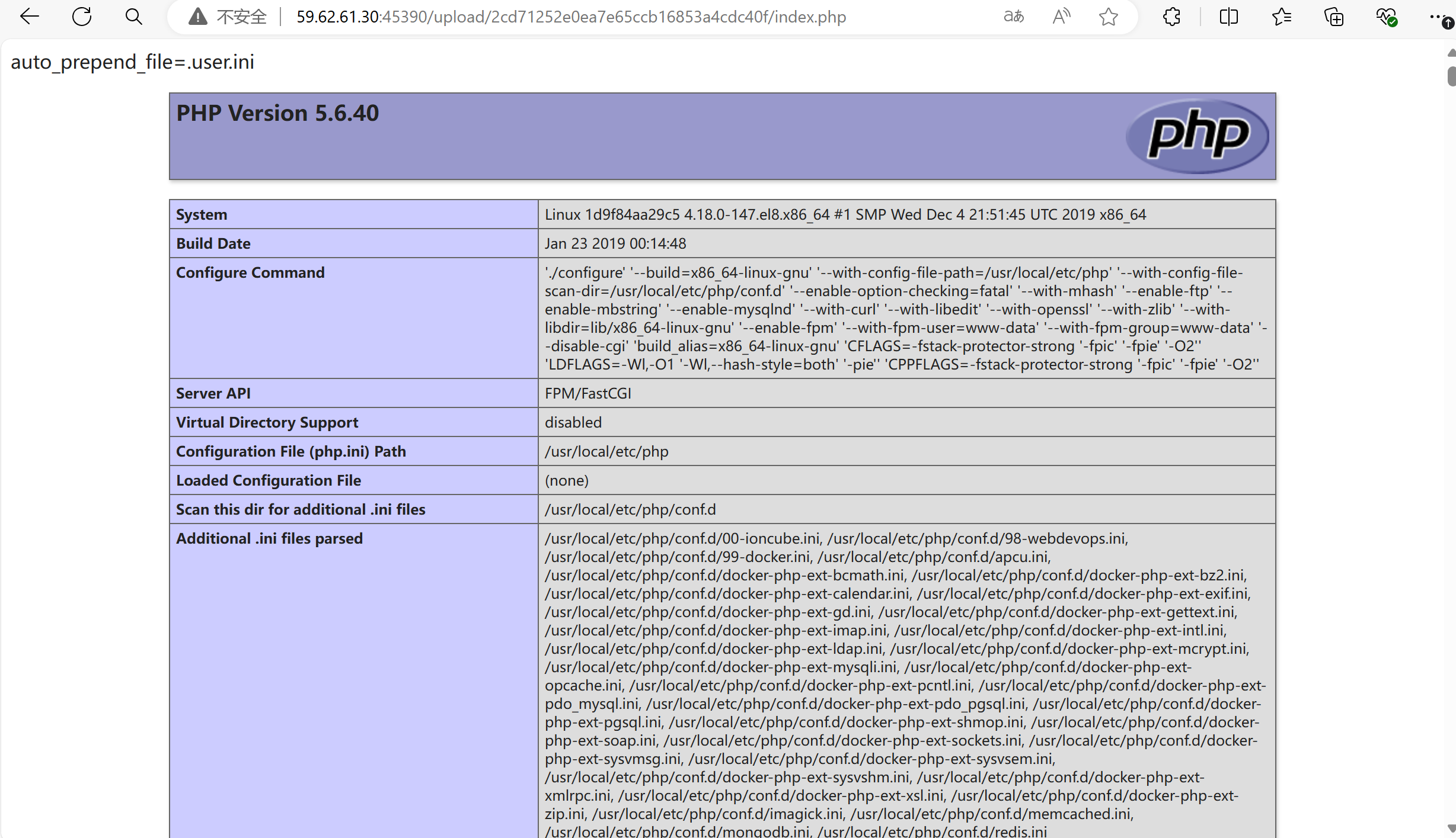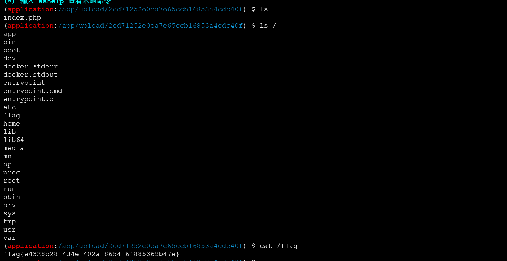 访问/upload/2cd71252e0ea7e65ccb16853a4cdc40f/index.php执行命令