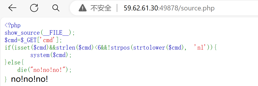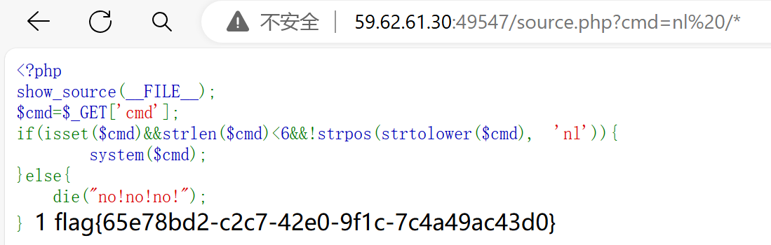 也就是说!strpos(strtolower($cmd), 'nl')的值就是1,也就是这个过滤其实没有用?