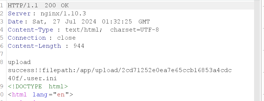 得到路径/app/upload/2cd71252e0ea7e65ccb16853a4cdc40f/.user.ini