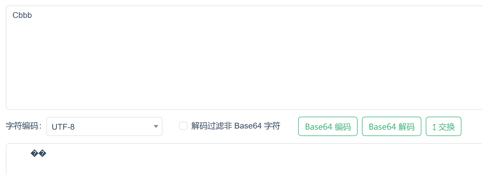 但是由于base-64的特性,将这串字符base-64解码后,$)作为无效字符将会被删掉,解码得到的’ ��’就是由Cbbb解码得到的,证明$)确实被删除。