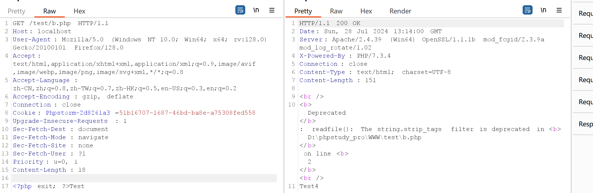 在文件中写入echo readfile('php://filter/read=string.strip_tags/resource=php://input');可以查看效果: